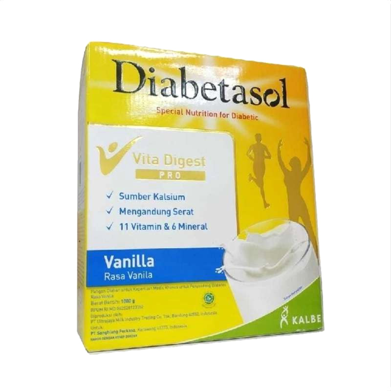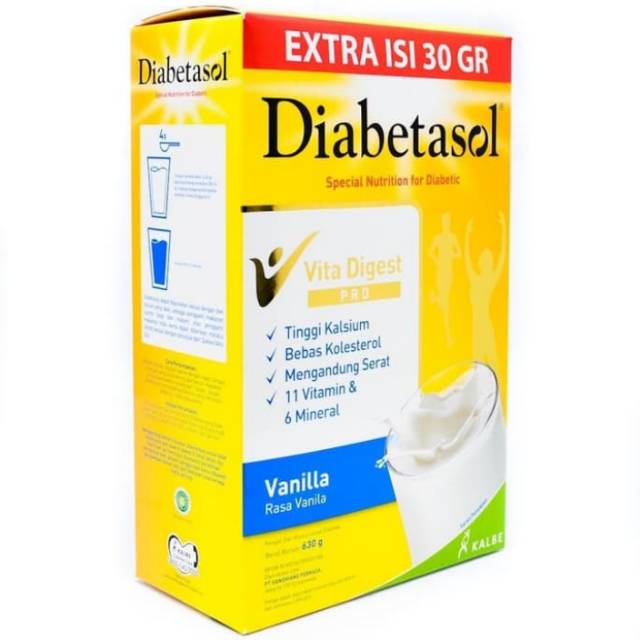 Selain berguna untuk penderita diabetes ada beberapa manfaat Diabetasol untuk diet yang mungkin beberapa diantaranya belum. Diabetasol Susu Formula Diabetes Vita Digest Vanila 180G. Vanilla Coklat dan Capuccino dengan kemasan UHT 200 ml sementara box berukuran 180gram 600gram dan 1000gram.